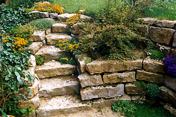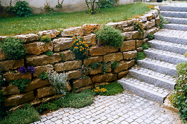Eine Trockenmauer zum Höhenausgleich und als Stützmauer wurde im Bereich der Einliegerwohnung erstellt.